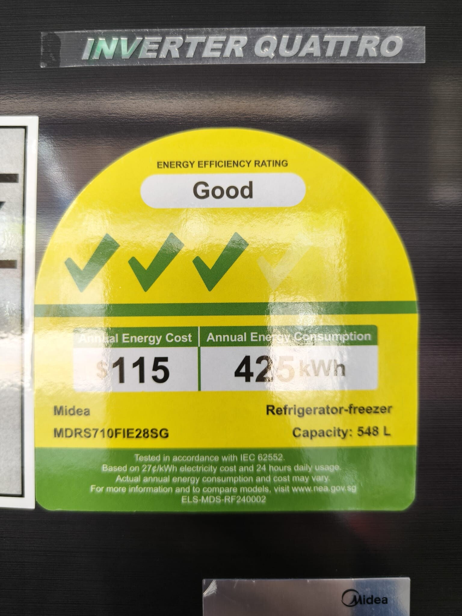 MIDEA 548L SIDE BY SIDE FRIDGE MDRS710FIE28SG Display set