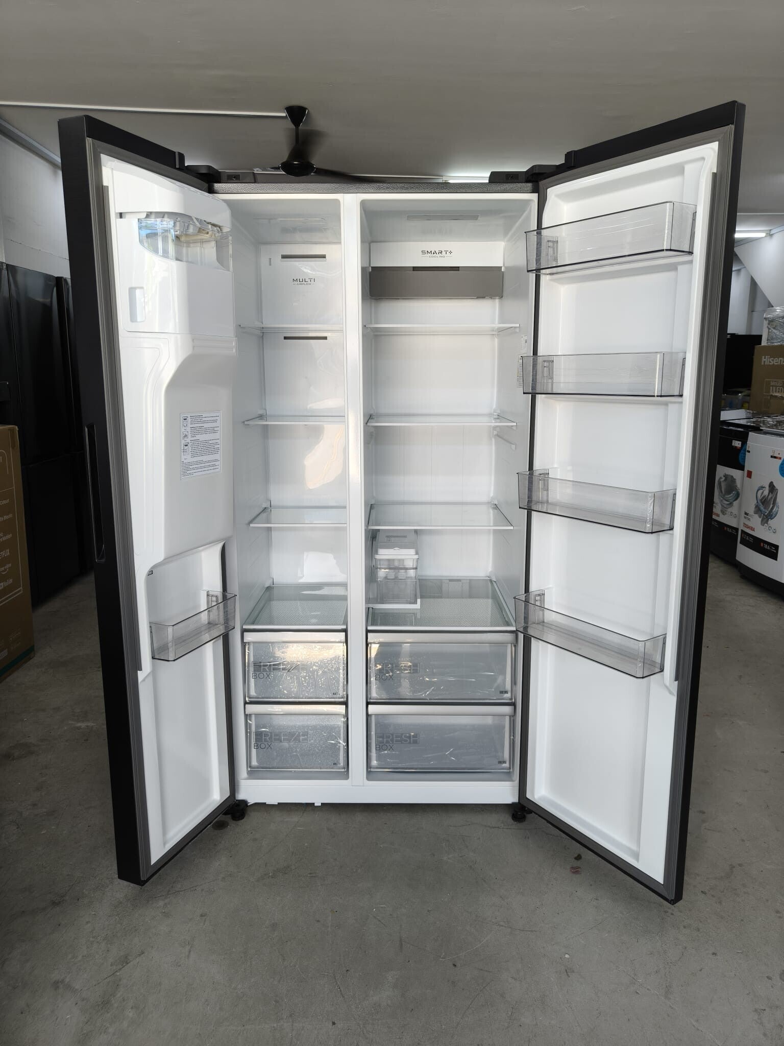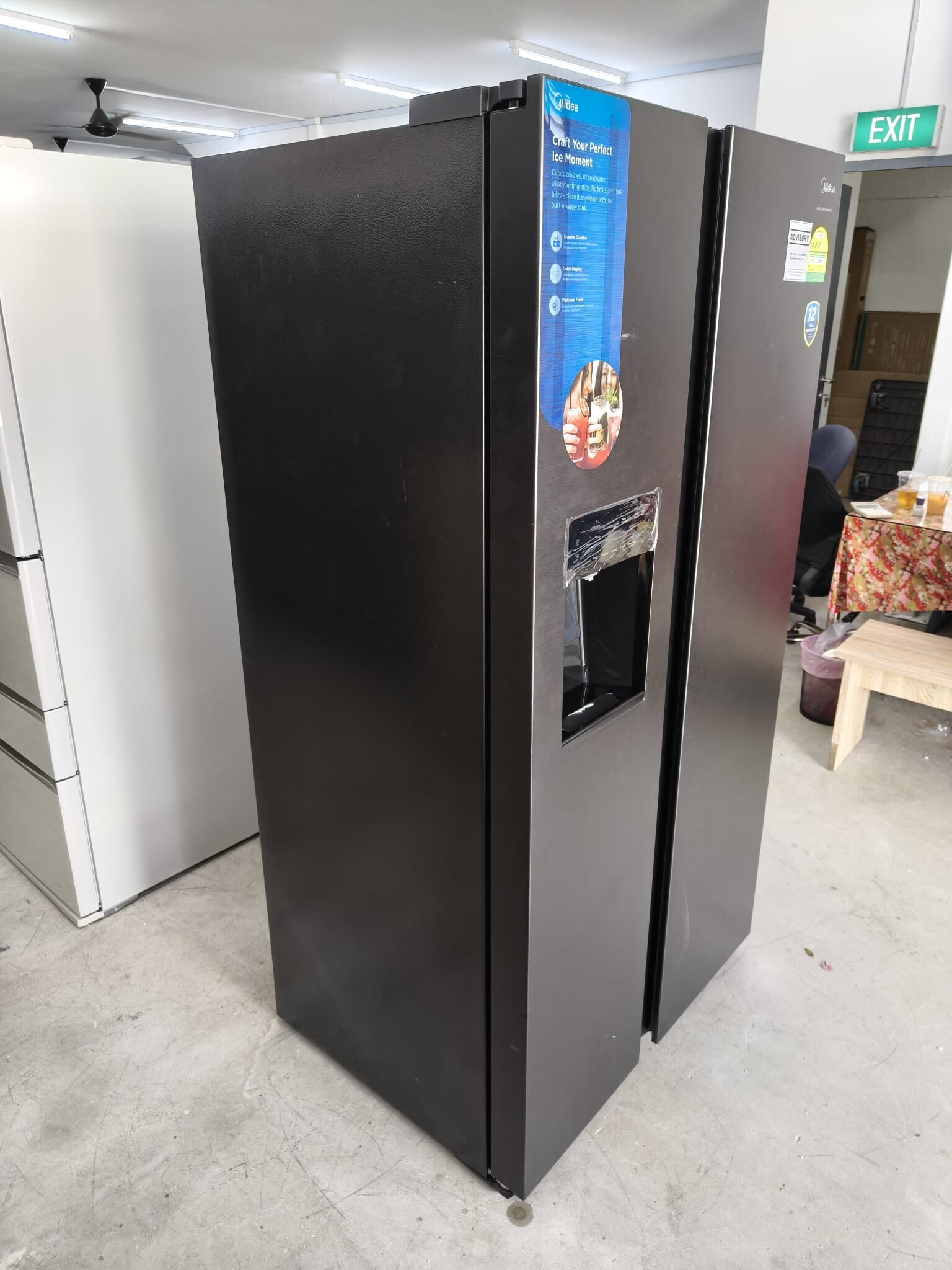 MIDEA 574L SIDE BY SIDE FRIDGE WITH ICE MAKER AND WATER DISPENSER Model: MDRS761MYC45SG Display set