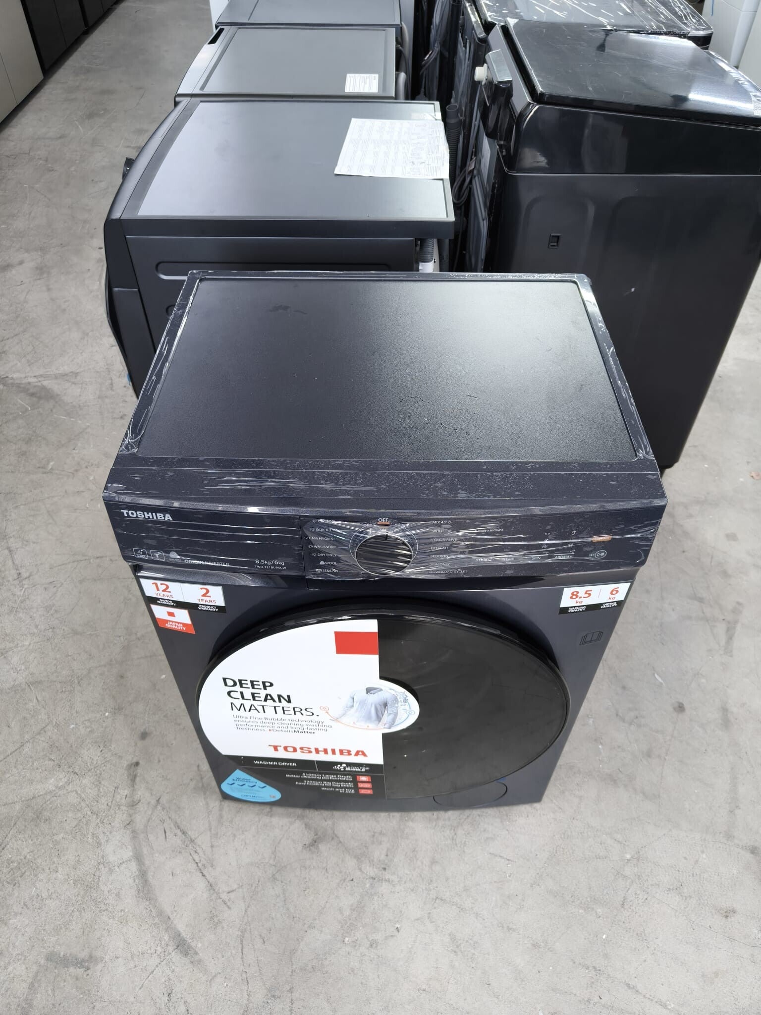 TOSHIBA 8.5KG/6KG FRONT LOAD WASHER/DRYER Model: TWD-T21BU95UWSDisplay Set