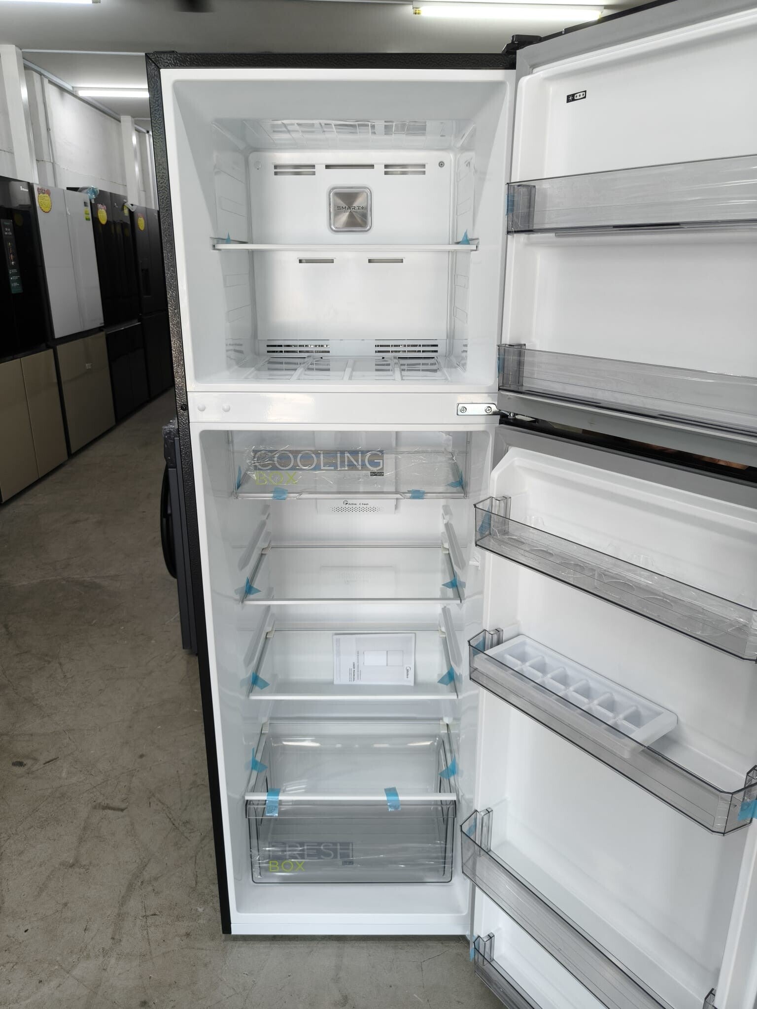 MIDEA 2 DOOR FRIDGE-TOP MOUNT FREEZER (268L) - TMF JAZZ BLACK DISPLAY SET MODEL: MDRT385MTC28-SG