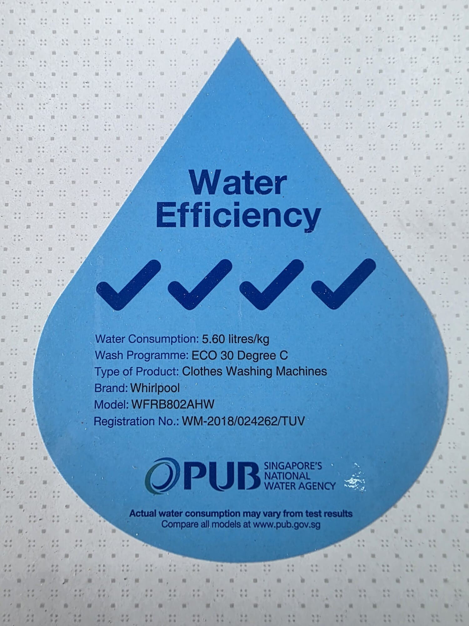 USEDWHIRLPOOL 8kg Front Load Washing Machine Model: WFRB802AHW