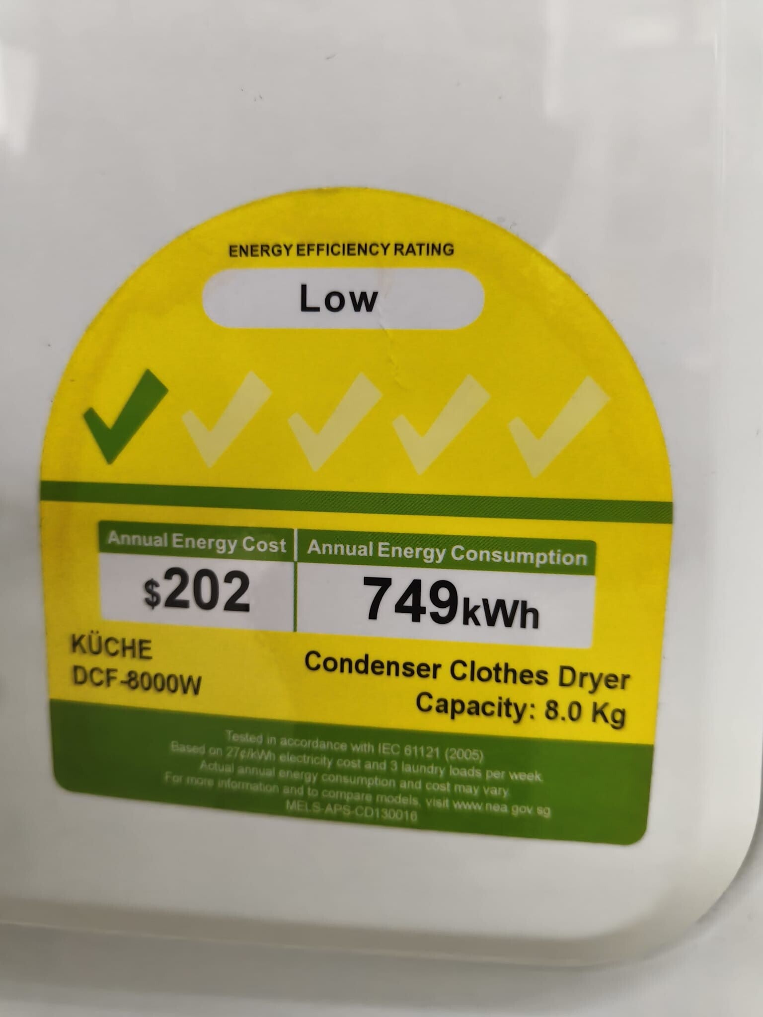 USEDKUCHE 8kg Air Vented DryerModel: DCF-8000W